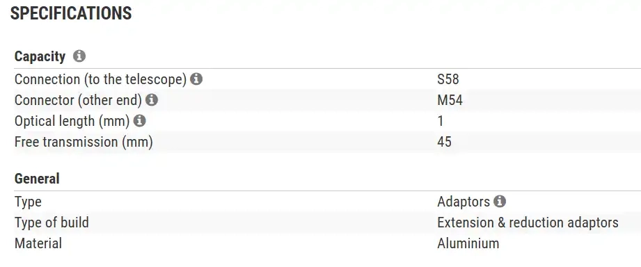 Adaptor with M54 external thread for connecting M54 threads, replaces the standard clamp, mounted using the S58 ring swan.