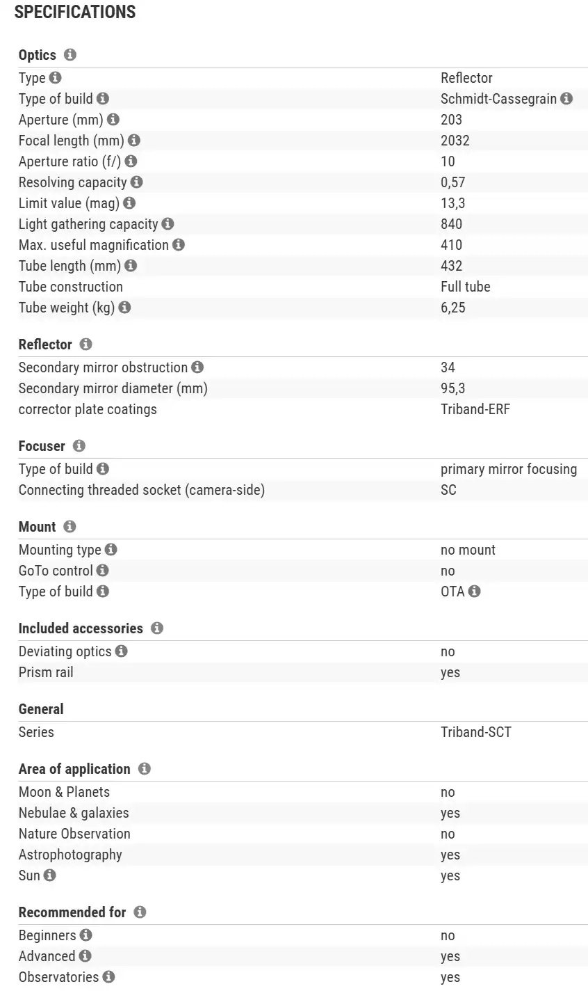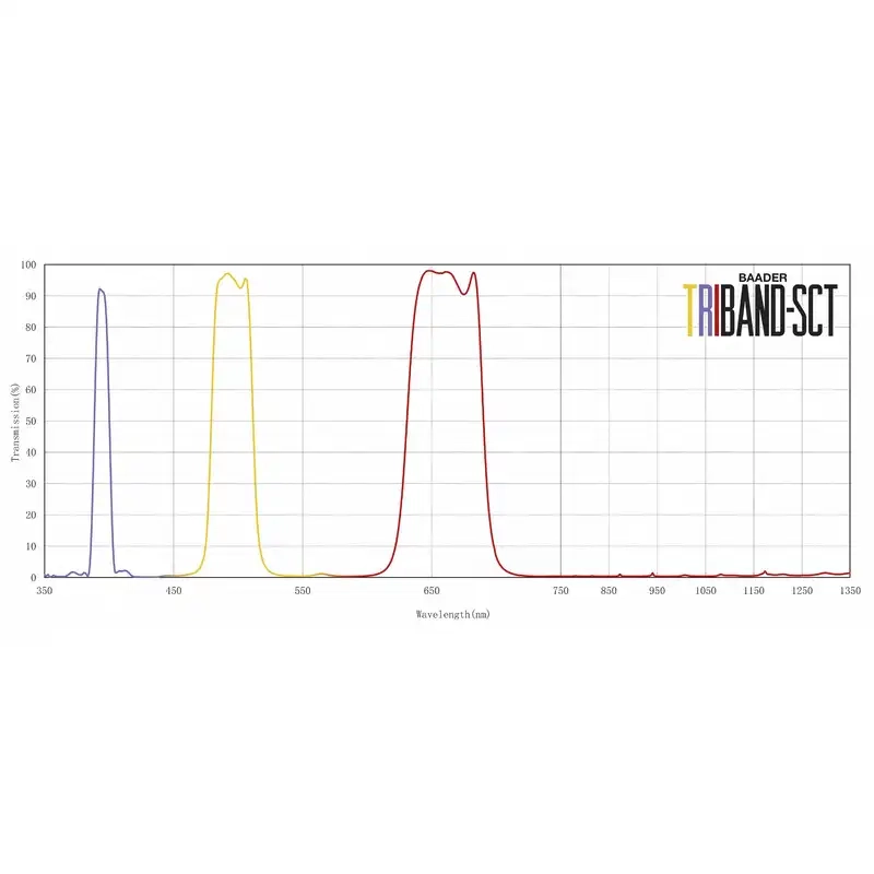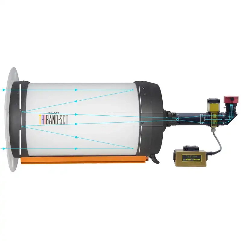 Perfect for high-resolution visual and imaging applications, the Triband-SCT supports standard Baader and Celestron accessories like the Baader Herschel Wedge, ASTF front filters, and all common narrowband filters (H-alpha, O-III, S-II, H-beta, RGB, UHC).