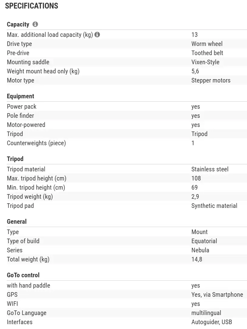 Thanks to the installed ASCOM Alpaca driver, you can use your own programs on your computer to control the mount – be it Stellarium or N.I.N.A. The two stepper motors with belt drive ensure smooth, direct drive of both axes. The only important thing is good balancing with counterweights.