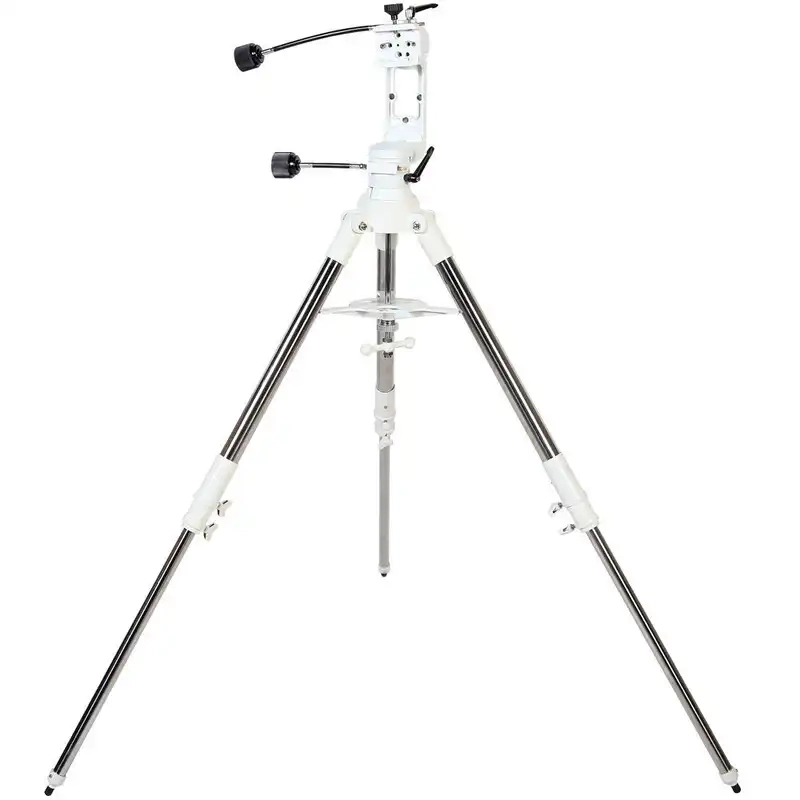 The mount comes with a sturdy, height-adjustable, stainless steel tripod.