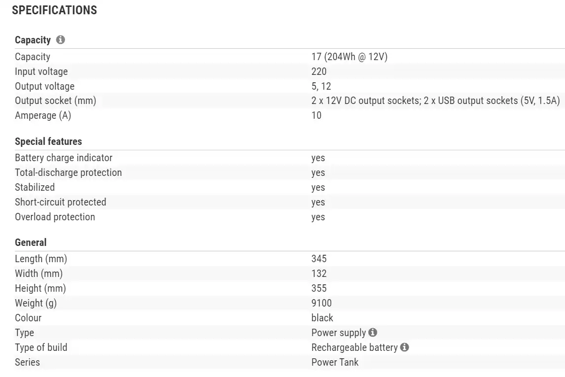 Four different LED lights will always let you know your Power Tank’s status. The green LED is lit shows it is ready to use. The yellow LED lights up when it needs charging. It comes with an AC adapter included for re-charging at a power socket. . You can avoid a deep discharge, as it always indicates when it needs to be charged, ensuring years of observing enjoyment.