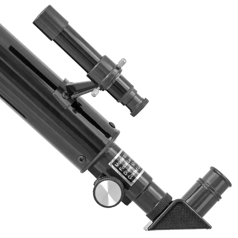 With the 50mm lens aperture, it can collect up to 50 times as much light as the naked eye. The included tabletop tripod provides a small azimuth stand.