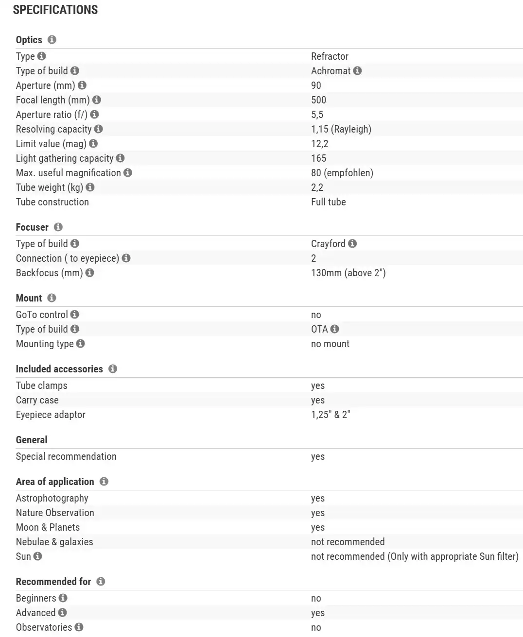 OMEGON Telescope AC 90/500 (OTA) 3,5″