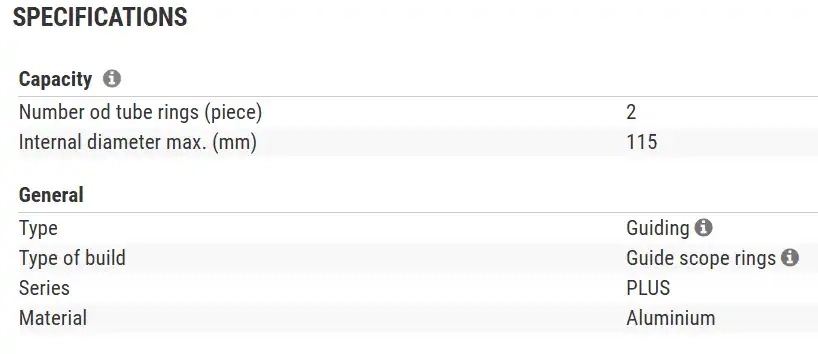 If you want to install a giode telescope in parallel to the main one, guide rings offer the simplest and cheapest solution to make this. The Guide rings PLUS 115mm offer a high build quality and all the features useful for this application, allowing you to install guide telescopes such as diameter 80mm refractors.