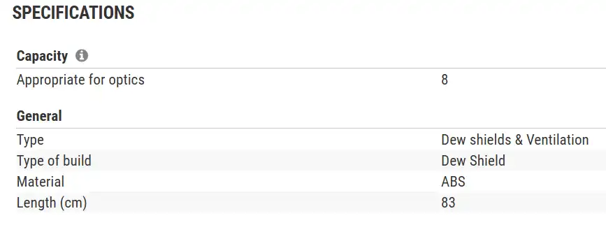 Suitable for tubes with a diameter of 215 to 260 millimetres, such as Maksutov-Cassegrains with a 180 mm aperture, SC and Newton telescopes with a 200 mm aperture (8 inches) or larger refractors.