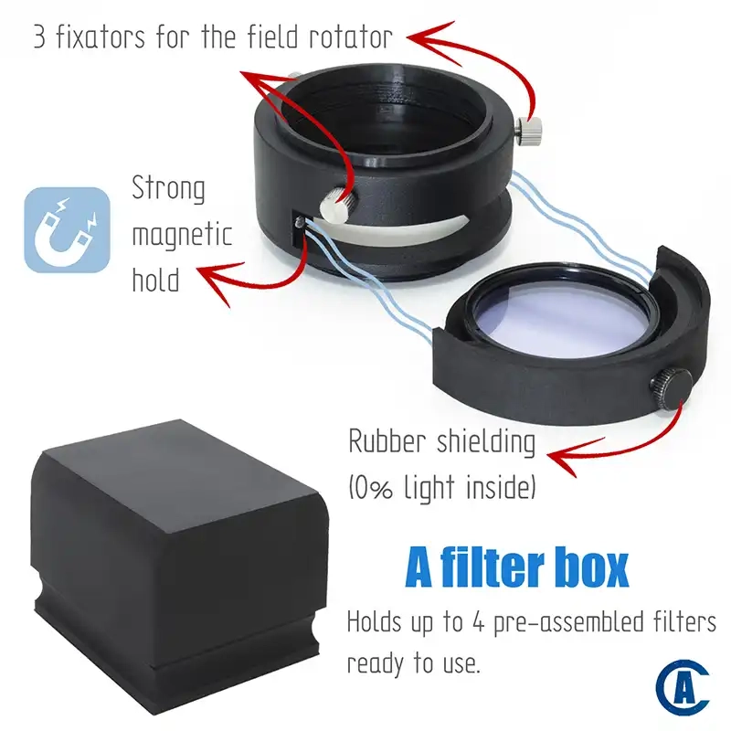 In addition, this gadget is also a very useful field rotator for astrophotography (all in one), although if you want you can also use it to view through eyepieces.