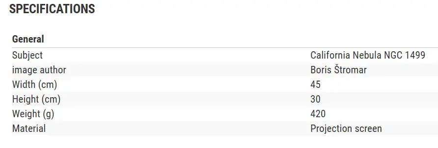 The photographs rich in detail and color show the wonders of the universe not only digitally but also on canvas prints. Each image is manually inspected, printed on a high resolution photo printer and carefully placed on a pinewood frame with sawtooth hanger. The printed image thus continues on the sides of the frame, so that it stands out from its glide when placed on the wall.