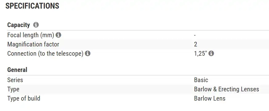 Φακός Barlow για Οπτική Παρατήρηση & Αστροφωτογραφία