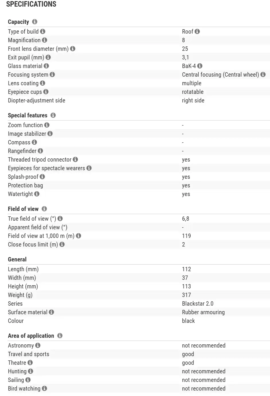 OMEGON Binoculars Blackstar 2.0 8×25