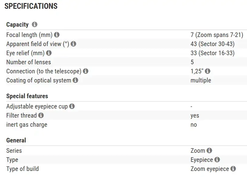 The continuously variable focal lengths between 7-21 mm make it easy to find the perfect magnification when observing your favourite objects. And that too without much experience and without constantly having to switch between different eyepieces.
