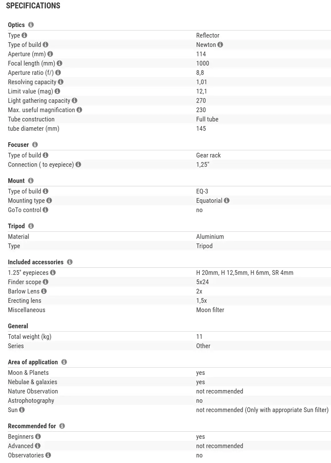 Star Sheriff 114/1000 EQ3 Reflector Telescope