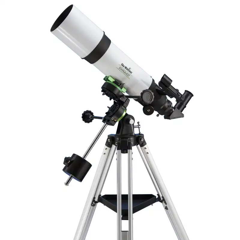 Starquest telescopes from Skywatcher combine small optics with a lightweight equatorial mount in a new design. A light aluminium tripod with an accessory tray is also included: the perfect telescope for easy transportation and a quick view of the sky.