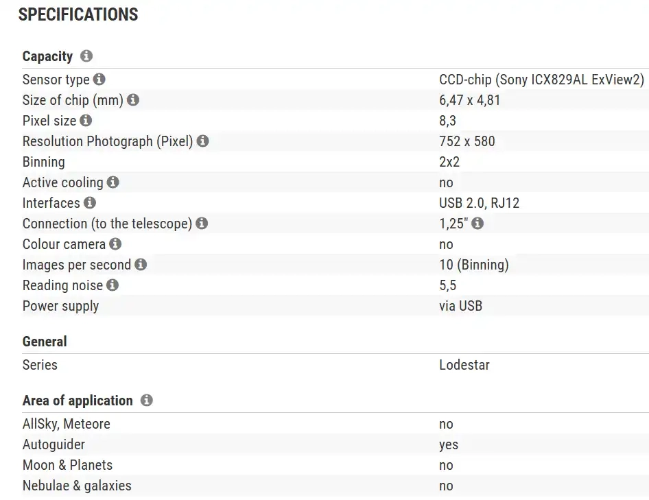 The Lodestar PRO is an upgraded version of the very popular Lodestar X2 autoguider with quicker download times and lower read noise electronics. The original Lodestar used the ICX429 Exview chip from Sony and offered excellent sensitivity.
