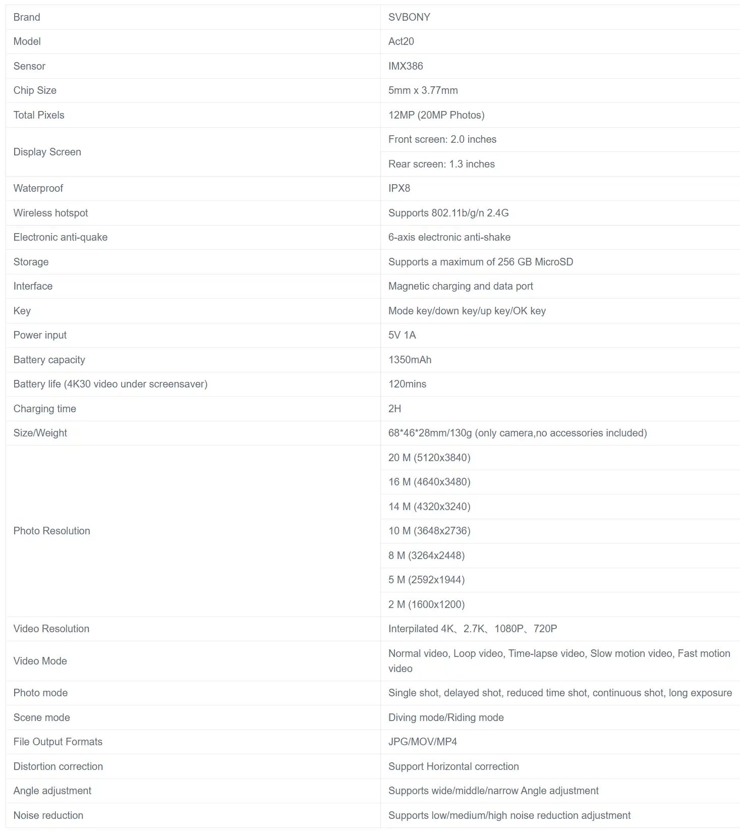 This SVBONY Act20 Ultra HD waterproof action camera is designed with high quality sensor, which can present delicate picture quality of Interpilated 4K high-definition videos and up to 20MP photos, making your adventures come to life without missing any exciting details.