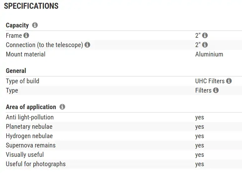 - Bandwidth: HA (15nm) OIII (35nm)